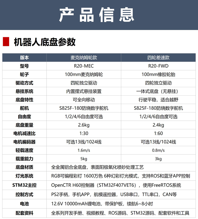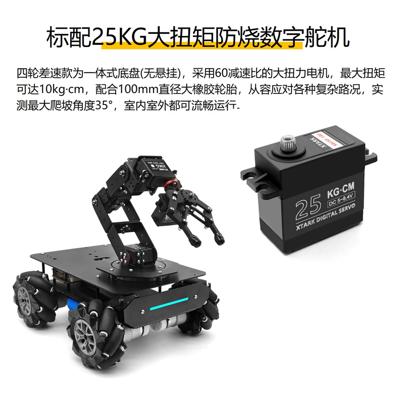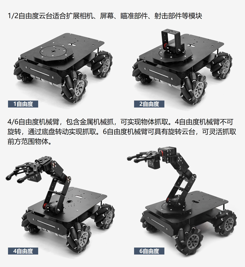 系列機械臂機器人底盤,可選麥克納姆輪、四輪差速底盤,可選