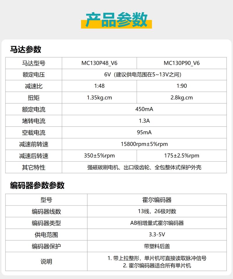 產(chǎn)品簡介:直流減速TT馬達帶外殼保護,顏值高;13線26極編碼器,精度高,多減速比可選;金屬輸出軸,品質(zhì)高耐用,可適配多款智能小車底盤。