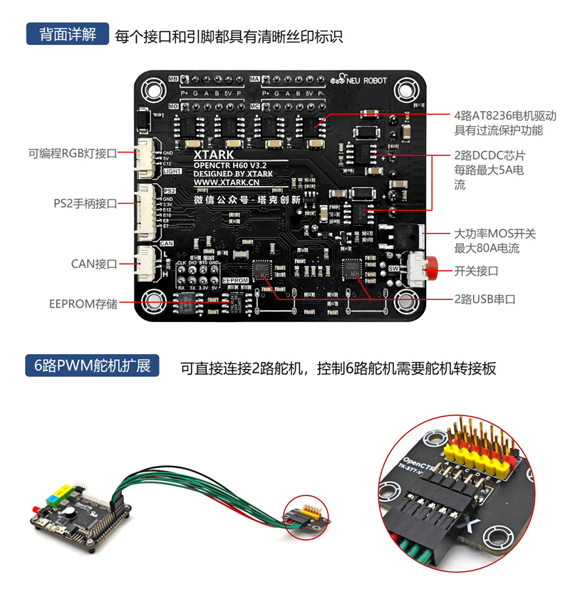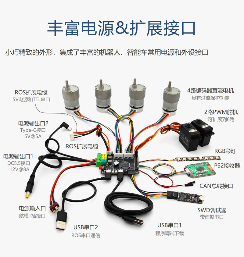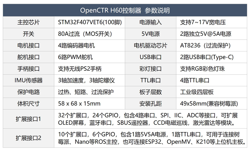產(chǎn)品簡介:OpenCTR B20控制器具有2路編碼器電機(jī)接口,6路PWM接口,是一款專為兩輪差速、阿克曼、履帶底盤、平衡車設(shè)計(jì)的機(jī)器人控制器。其內(nèi)置IMU,可通過串口與外界連接,具有一路5V5A電源和一路12V5A輸出,可為樹莓派、魯班貓、旭日X3等主控供電。代碼和原理圖全部開源。